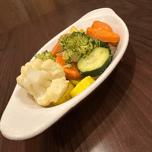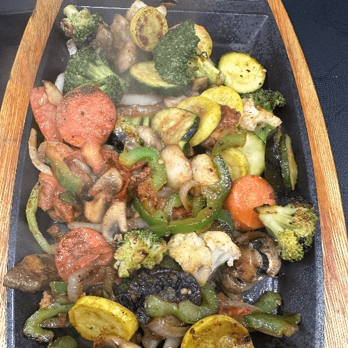 A combination of broccoli, cauliflower, carrot, zucchini, and fajitas veggies. Served with rice and beans.