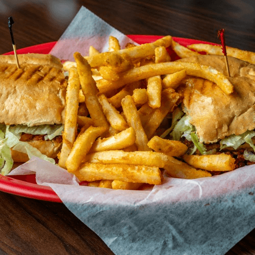 1/2 Pound of BBQ Pork smashed between sourdough bun. Served with fries.