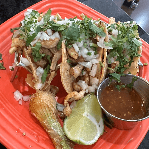 Authentic Mexican style tacos on a small 4 inch corn tortilla. Choice of meat, topped with cilantro, onion, lime wedge, and side of spicy tomatillo sauce.