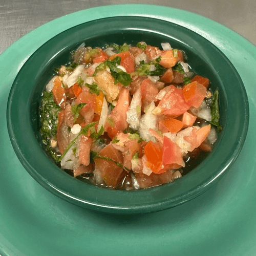 A tomato based sauce mixed with citrus juices, fresh onions, tomatoes, jalapeños, cilantro, avocado, and ketchup. Served with salted crackers.